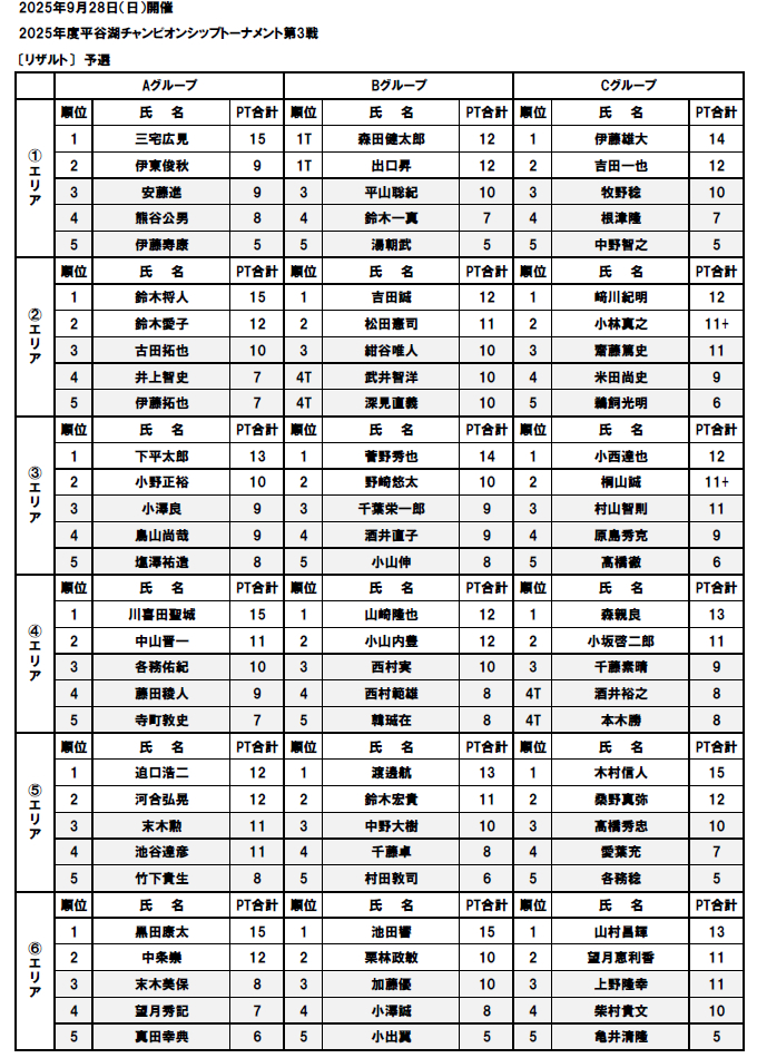 2025年度平谷湖チャンピオンシップトーナメント